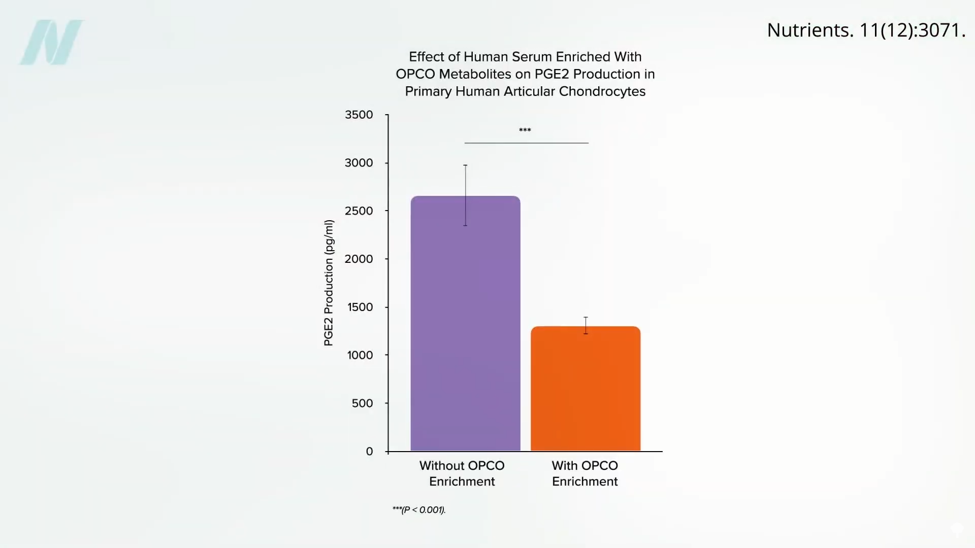 Researchers in France collected cartilage from knee replacement surgeries and then exposed it to blood samples from volunteers who had taken a whopping dose of a grapeseed and olive extract. They saw a significant drop in inflammation, as shown below and at 2:30 in my video.